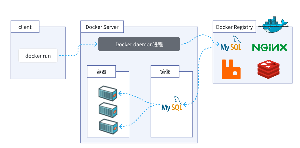 因此,Docker安装软件的过程,就是自动搜索下载镜像,然后创建并运行容器的过程。