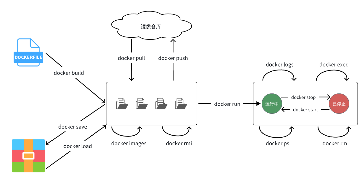 | docker load | 加载本地压缩文件到镜像 | docker load |